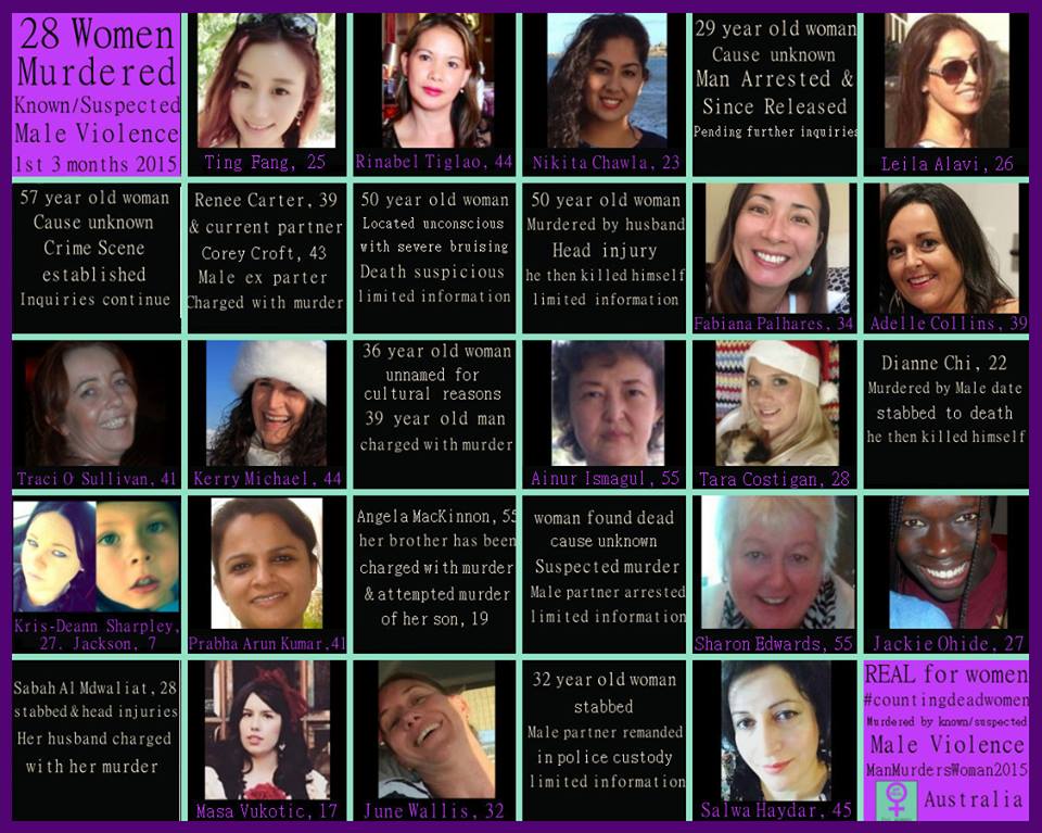 * There has been some confusion about the actual tally. For those using the Destroy the Joint tally, this includes women killed by other women (three this year). This is not to diminish those deaths in the slightest (in the same way that male violence against males is also not to be ignored) but as Male Violence Against Women is the issue that needs a searing spotlight, I use the tally linked in the piece as it follows the #countingdeadwomen campaign of the UK, started by Karen Ingala Smith. Only male murdering female)