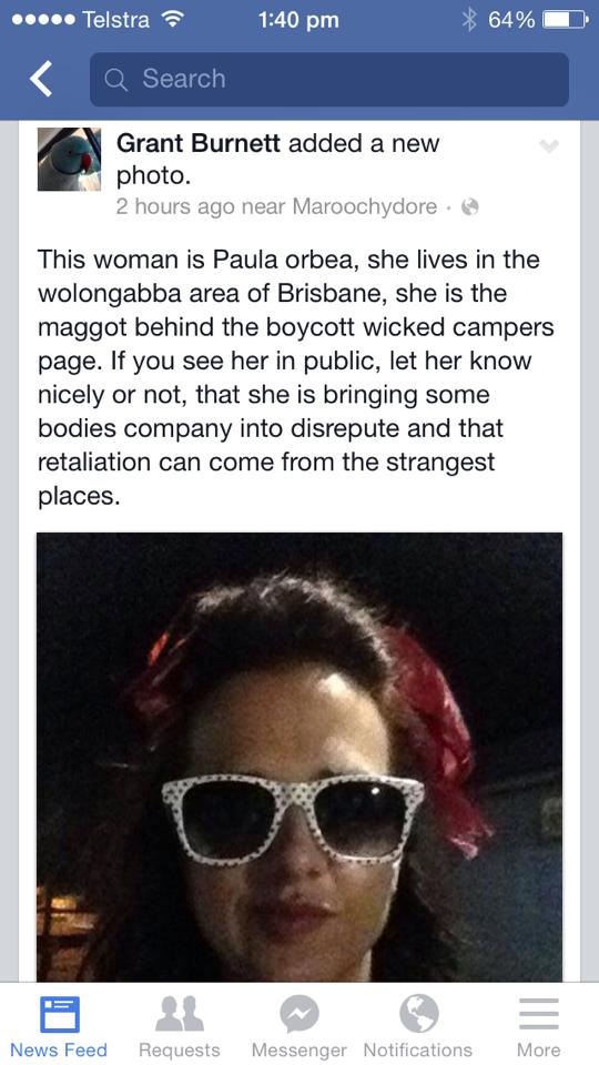 Down to earth blogger and all-round amazing human, Eden Riley, was active and did it her way; numerous people have written to me, telling me they have contacted camp sites to enquire about their policy regarding Wicked vans – some sites don’t let the vans in, if they have offensive slogans. Let backpackers know this. Others have written to their political reps.