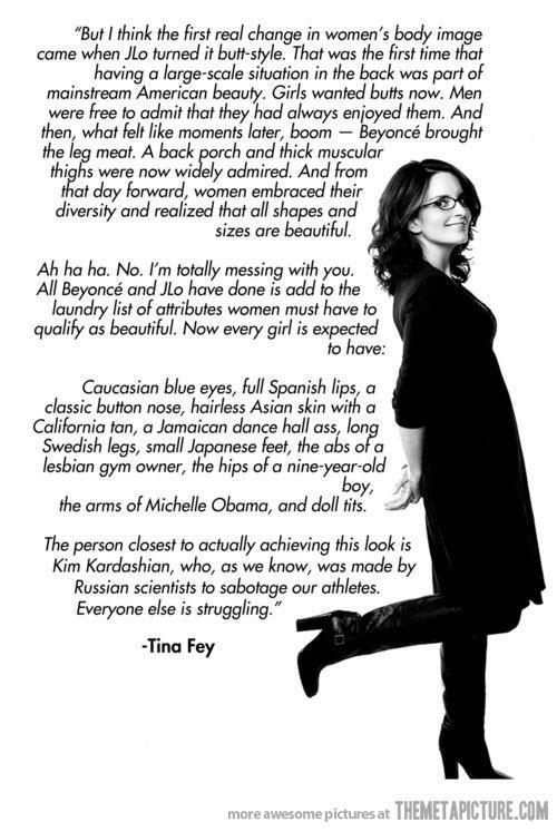 Ironically, Tina Fey stated the following – which is bloody fantastic and spot on – and yet she did the exact opposite in her PS sentence: