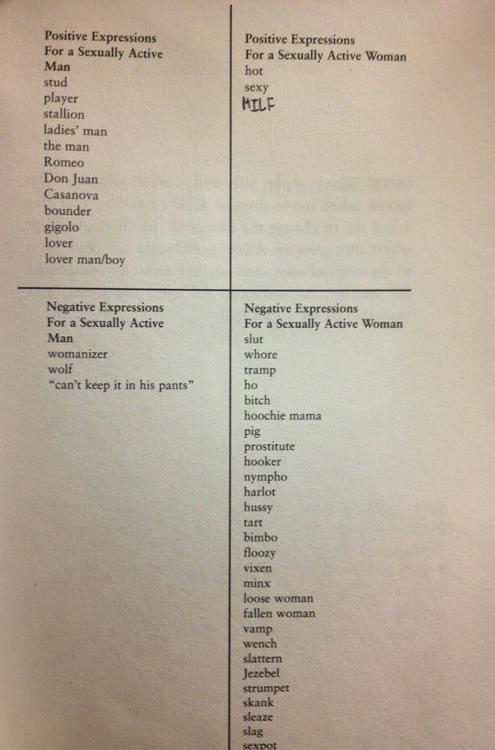 As much as this is looking at terms relating to being sexually active, many of the negative phrases for women, spill over into day to day insults: slut – whore – bitch… There are two words missing (actually, I’m sure many more exist) that I hear used often about women: